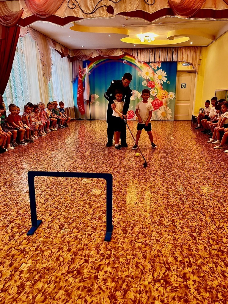 Роман рассказал о таком виде спорта как хоккей, продемонстрировал форму полевого игрока, объяснил и наглядно показал техники дриблинга и бросков по воротам. Объяснил насколько важен спорт в жизни каждого человека, независимо профессионально он им занимается или для поддержания себя в форме.